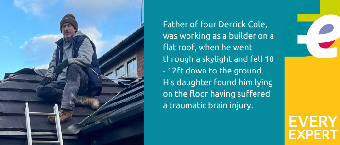 Derrick suffered a severe traumatic brain injury due to a fall from a roof onto a concrete floor from a height of 10-12 feet. He sustained a right subdural haematoma and consequently had decompressive craniectomy, where part of his skull was removed to relieve pressure exerted on the brain from the bleed.