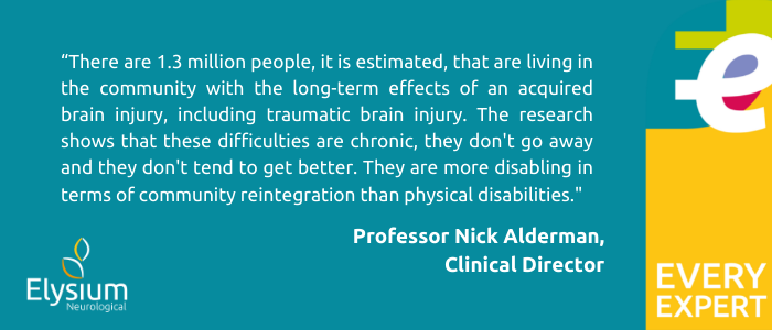 Professor Nick Alderman is Clinical Director, Neurobehavioural Rehabilitation Services & Head of Psychology at Elysium Neurological Services. He is acknowledged internationally as one of the foremost experts in neurobehavioural rehabilitation, having more than three decades experience in this field. In June 2021, Professor Alderman, and his research colleagues at Swansea University, published a study which looked at the prevalence and predictors of neurobehavioural disability amongst survivors with TBI in the community.