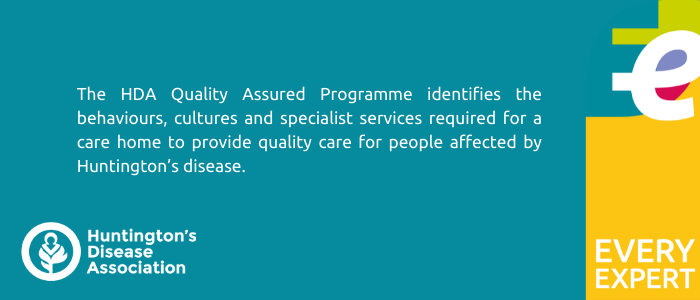 HDA Quality Assured is a quality assurance programme run by the Huntington’s Disease Association to help families find a suitable care home or service for their loved one. It identifies the behaviours, cultures and specialist services required for a care home to provide quality care for people affected by Huntington’s disease.