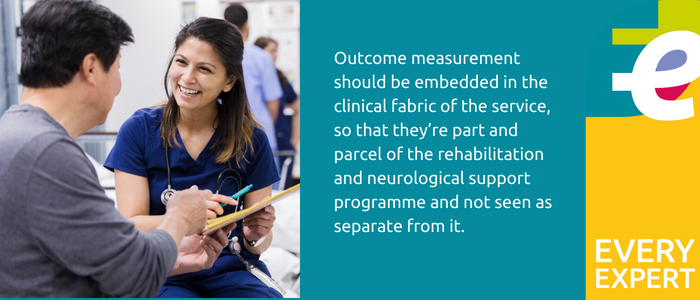 “There are numerous issues with the use of outcome measurements in neurological rehabilitation in general, which vary from service to service across the sector. The issues range from some services not using outcome measures at all, to those who go through them in a notional way and those who don’t have the expertise to interpret the outcomes. Often they are seen as a separate part of the clinical process, so rather than informing the process, outcomes often stand alone. In those cases, the true value of using outcome measures is not fulfilled.