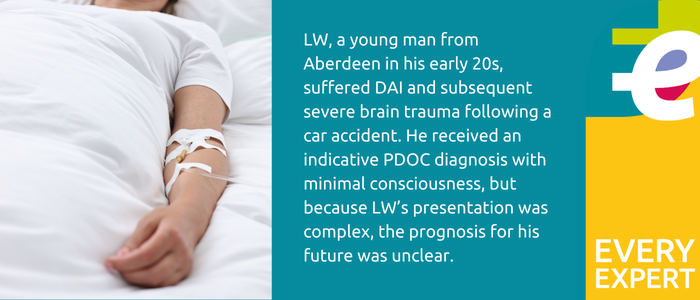 In this EveryExpert article, we draw upon the case study of LW, a young man with Diffuse Axonal Injury (DAI), and explore the challenges of meeting the emergence criteria for PDOC, especially if an individual has very complex needs. Plus, we consider the assessment from the clinician’s perspective and speak with Kirsty Allison, Senior Neuro Occupational Therapist from The Bridge Neurological Centre. We discuss the challenges of assessing a patient with unclear presentation and the importance of using a patient’s identified strengths to achieve the consistent responses needed to determine emergence.