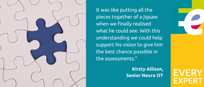 “It was like putting all the pieces together of a jigsaw when we finally realised what he could see. With this understanding we could help support his vision to give him the best chance possible in the assessments.”