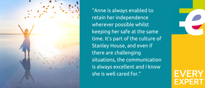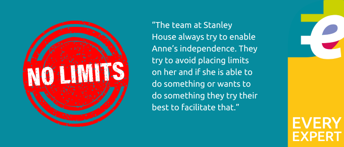 I feel that the team at Stanley House always try to enable Anne’s independence. They try to avoid placing limits on her and if she is able to do something or wants to do something they try their best to facilitate that.
