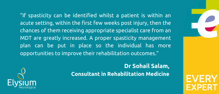 Dr Salam says: “If spasticity can be identified whilst a patient is within an acute setting, within the first few weeks post-injury, then the chances of them receiving appropriate specialist care from an MDT are greatly increased. A proper spasticity management plan can be put in place so the individual has more opportunities to improve their rehabilitation outcomes and they’re likely to have a better experience of care. So early intervention can improve rehabilitation outcomes, reduce length of stay in acute hospital and also improves quality of life.