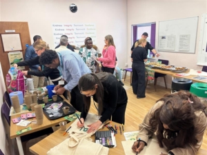 The event brought together staff and service users for a drop‑in day filled with hands‑on activities designed to bring people together and encourage environmentally friendly habits. Attendees took part in seed planting, vegan food tasting, a recycling‑focused “bin challenge,” a sustainability quiz, and a creative tote bag‑for‑life design station. Throughout the day, presentations explored topics such as food waste, recycling, and the benefits of green space.