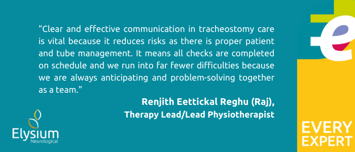 Clear and effective communication in tracheostomy care is vital because it reduces risks as there is proper patient and tube management. It means all checks are completed on schedule and we run into far fewer difficulties because we are always anticipating and problem-solving together as a team.”