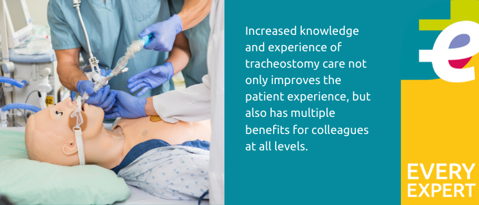 Increased knowledge and experience of tracheostomy care not only improves the patient experience, but also has multiple benefits for colleagues at all levels. In particular, it contributes significantly towards prompting clear and efficient communication. To deliver effective care, team members must fully appreciate the need for detailed communication with each other and the requirement for collaborative working.